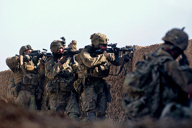 Paratroopers with 1st Brigade Combat Team, 82nd Airborne Division fire at insurgent forces during a firefight on June 15 in Afghanistan’s Ghazni Province. US Army photo by Sgt. Michael J. MacLeod.