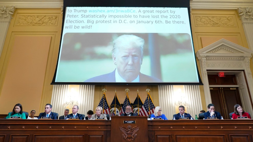 Much coverage of the January 6 committee and its hearings has up to now focused on the political implications: Will this help the Democrats for the coming midterm elections? Such framing is a disservice, as it turns this singular event into merely another point of made-for-cable-TV conflict. The Republicans have tried mightily to cast the 1/6 riot as just another partisan matter in the never-ending scuffle between Ds and Rs. This has become their go-to tactic when defending the sins of Donald Trump and the excesses of Trumpism. The Russian attack on the 2016 election and the Trump crew aiding and abetting this assault on American democracy? Just a partisan witch hunt. Trump’s effort to pressure a foreign leader to generate dirt on a political rival? More Democratic caterwauling. And the seditious January 6 raid? Though GOP leaders in its initial aftermath expressed shock and blamed Trump—Senate minority leader Mitch McConnell told colleagues Trump’s conduct was impeachable, and House minority leader Kevin McCarthy castigated Trump publicly—the Republicans reverted to their default position on Trump wrongdoing: no big deal.