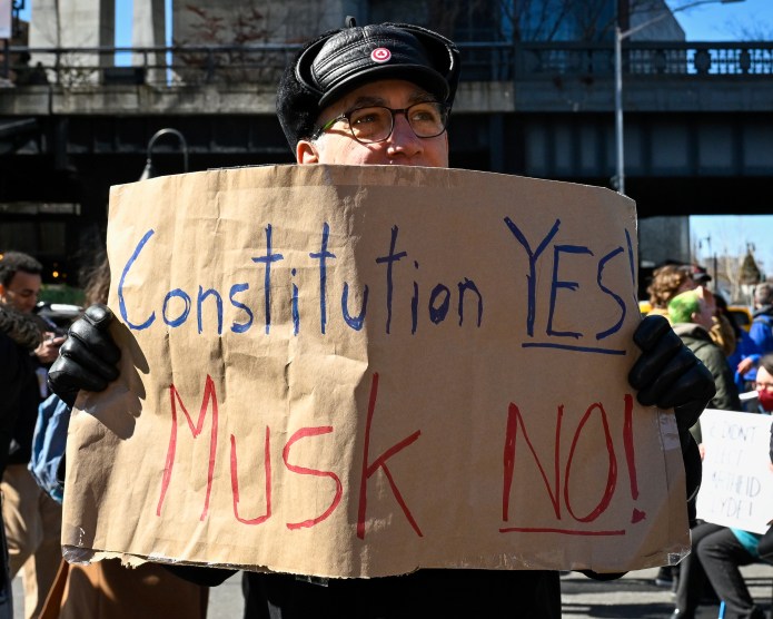 These are a sample of the messages that targeted Elon Musk over the weekend, as thousands of protesters across the country flooded local Tesla dealerships to express their outrage over the tech CEO’s escalating war on the federal government.
