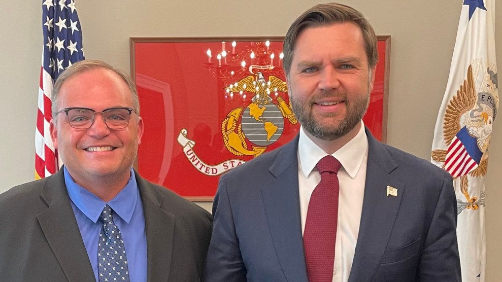 Bucks County Beacon reporter Jennifer Cohn revealed venture capitalist Chris Buskirk was listed as the editor and publisher of TheoBro online magazine American Reformer. (The publication’s cofounder, Nate Fischer, later clarified to Mother Jones that Buskirk’s listing in the filing had been a clerical error, and that he was actually a board member of American Reformer.) In 2022, Buskirk co-founded the Rockbridge Network, a collection of powerful Trump donors including Catholic judicial kingmaker Leonard Leo and Silicon Valley billionaire Peter Thiel. Another co-founder of the Rockbridge Network? None other than JD Vance.